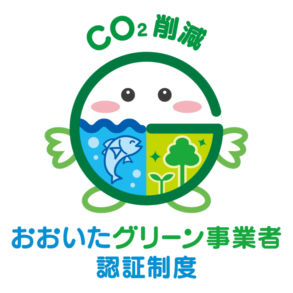 おおいたグリーン事業者制度の脱炭素部門で、認証されました!